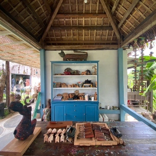 From here, the tour continues to an art space where pieces of driftwood are carefully shaped into striking sculptures and decorative objects. Guests are invited to take part in a hands-on session, guided by the artists themselves, creating a personal keepsake while learning about the value of reusing natural materials. The experience then moves to the home studio of a respected local artist, whose distinctive works made from reclaimed scrap tell stories of renewal and imagination.