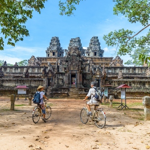 Visitors to the Angkor temples in Cambodia are often captivated by their timeless tranquility. To experience the site’s quiet heart away from the crowds, travellers can explore it by bicycle.