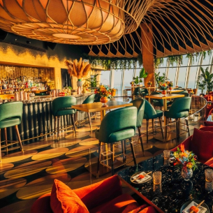 Inside, the ambiance is just as captivating. Designed by the acclaimed KokaiStudios, the interior boasts a breathtaking 3D-printed bamboo installation, composed of 9,000 individual pieces.