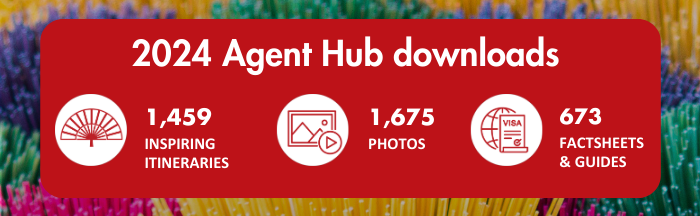 At Destination Asia, our Agent Hub continues to be a source of inspiration for our partners, offering curated content to help you promote and market your business. In 2024, our itineraries, photos, and practical factsheets were among the most downloaded resources. These materials assist you in crafting your own personalised experiences, helping your business shine over the competition.