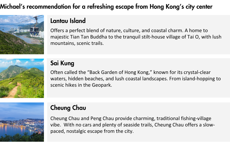 We’re seeing longer stays and more multi-destination trips that combine Hong Kong with Macau or nearby regions in mainland China. Travellers also want itineraries with personality e.g. food-led exploration, neighbourhood walks, wellness, and time in nature as opposed to the traditional highlights tour.