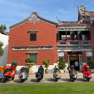 Penang’s George Town is packed with cultural and architectural must-sees and, perhaps above all, a dizzying choice of must-try places for sampling the famous Malaysian cuisine. And zipping from place to place on a conducted tour with a fleet of Vespa scooters is an ideal, fun way to enjoy the very best of it all.