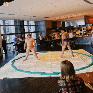 The event began with a champagne reception, followed by a stunning, choreographed swordsmanship display. In a separate area, guests were introduced to sumo wrestling before enjoying an exciting exhibition bout between two renowned wrestlers.